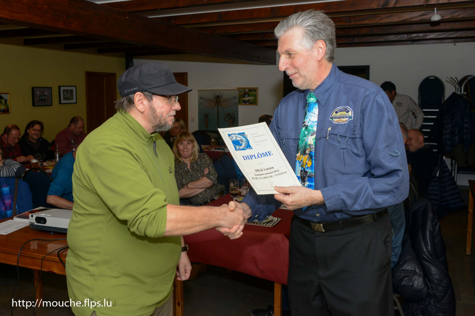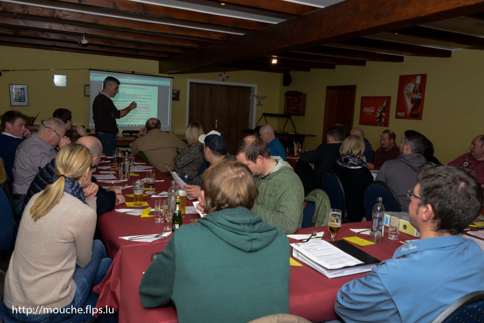 Die 36te Generalversammlung der Fliegenfischer fand am vergangenen Wochenende im Lokal der „Rollinger Weiheren“ in Lamadelaine statt. Zahlreiche Mitglieder waren dem Aufruf von Präsident René Kleman gefolgt, welcher in seiner Rede den aktiven Mitgliedern für ihren Einsatz dankte. Besondere Erwähnung fand „Staangebauer“ Guy Hastedt, welcher nunmehr zum 16 mal eine gespliesste Fliegenrute zum Anlass des Fliegenfischerturniers am See von Weiswampach stiftet. Ein Wettbewerb mit über 126 Teilnehmern, der alljährlich in enger Zusammenarbeit mit den „Fëscherfrenn va Weiswampich“ am dortigen See organisiert wird und in diesem Jahr am 23 April stattfindet.