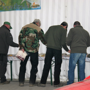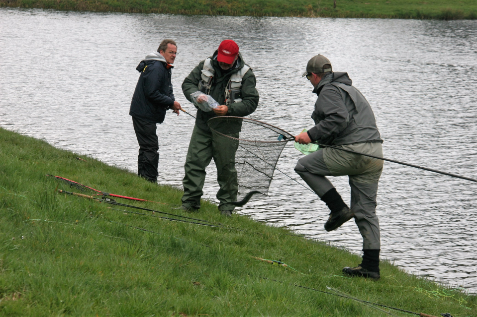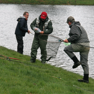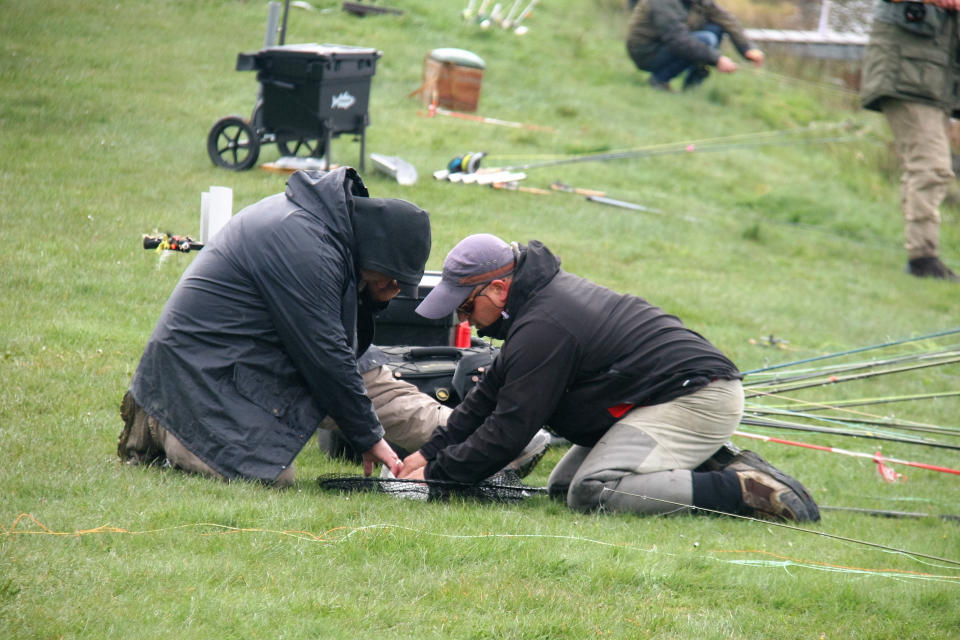 3 Tage vor dem Wettbewerb, wurde der See mit Forellen neu besetzt, eine unumgängliche Massnahme, da die dort überwinternden Kormorane ganze Arbeit geleistet und den See sozusagen fast leergefressen hatten. Beim Besatz wurden auch in diesem Jahr wieder etwa 70 Grossforellen eingesetzt da beim Turnier alljährlich eine gespliesste Fliegenrute von „Staangebauer“ Guy Hastedt für den Fänger des grössten Fisches überreicht wird.