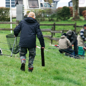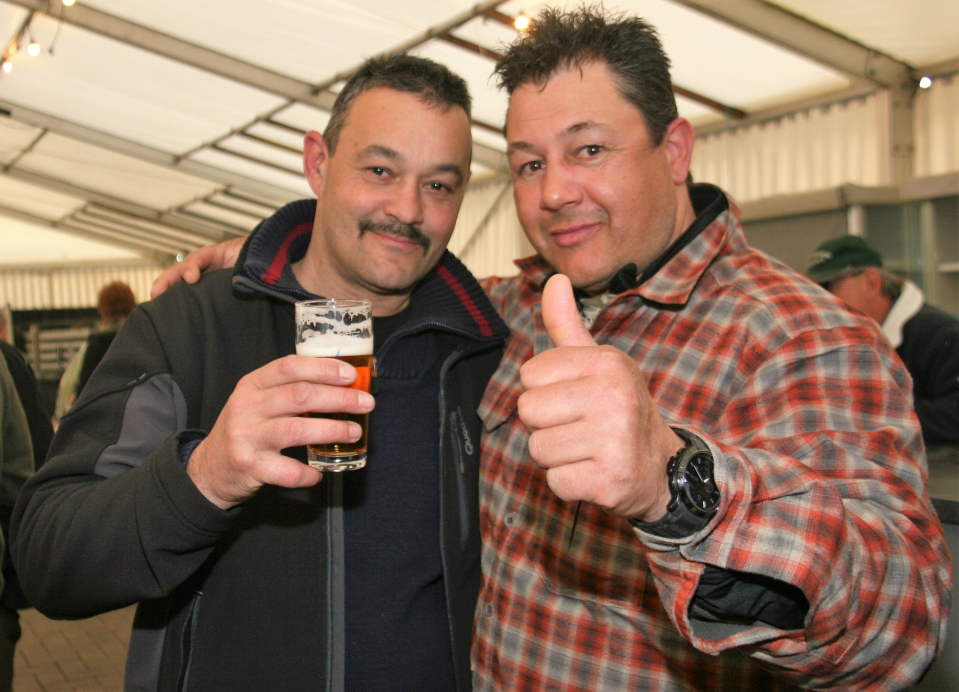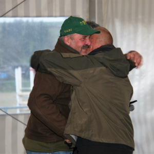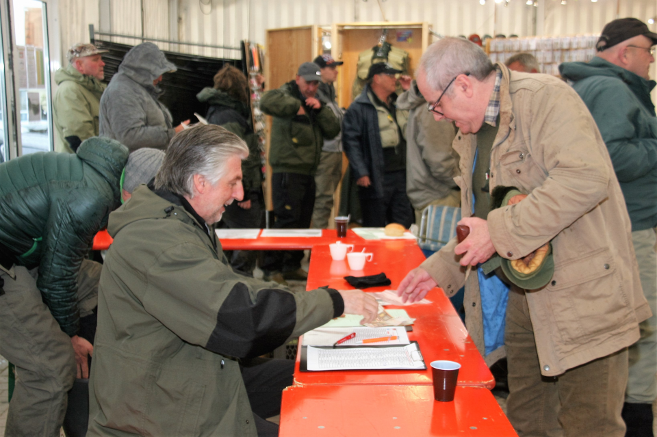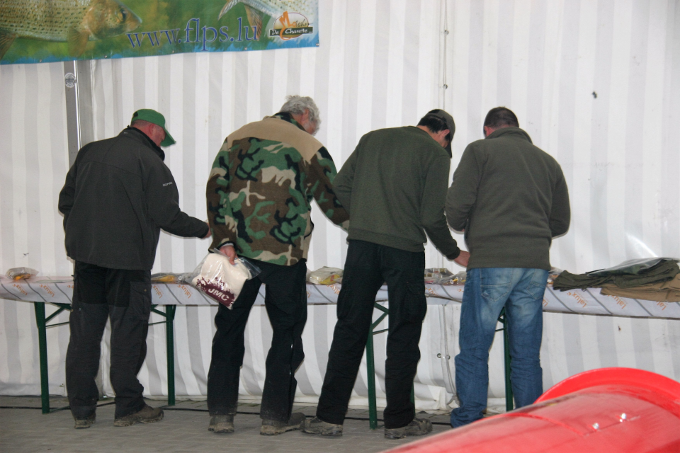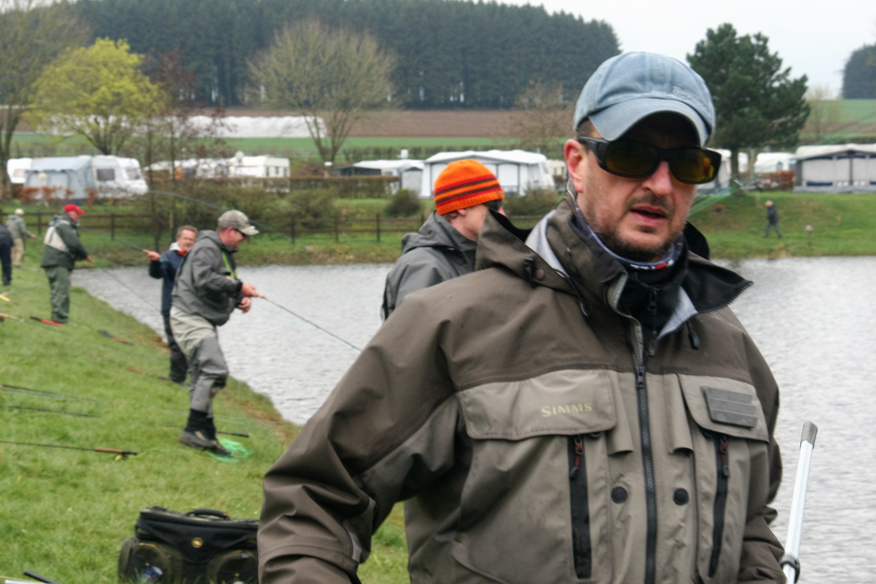 Nach den hohen Temperaturen der vorangegangenen Tage, kam es in der Nacht zum Samstag zu einem Temperatursturz, sodass am frühen Morgen Schnee fiel. Der kalte Wind aus Norden ist bei den Anglern nicht gern gesehen da die Fische dann allgemein schlechter beissen. Glücklicherweise, wurde trotzdem von Beginn an recht gut gefangen und die Fische hatten sich gleichmässig über den See verteilt. Auch die erste fette Forelle liess nicht lange auf sich warten und im Laufe des Wettbewerbs sollten noch weitere 25 Grossforellen gefangen werden. Das grösste „Schwengchen“, eine Regenbogenforelle von 76 cm wurde von Stefan Allaker aus Belgien gefangen.